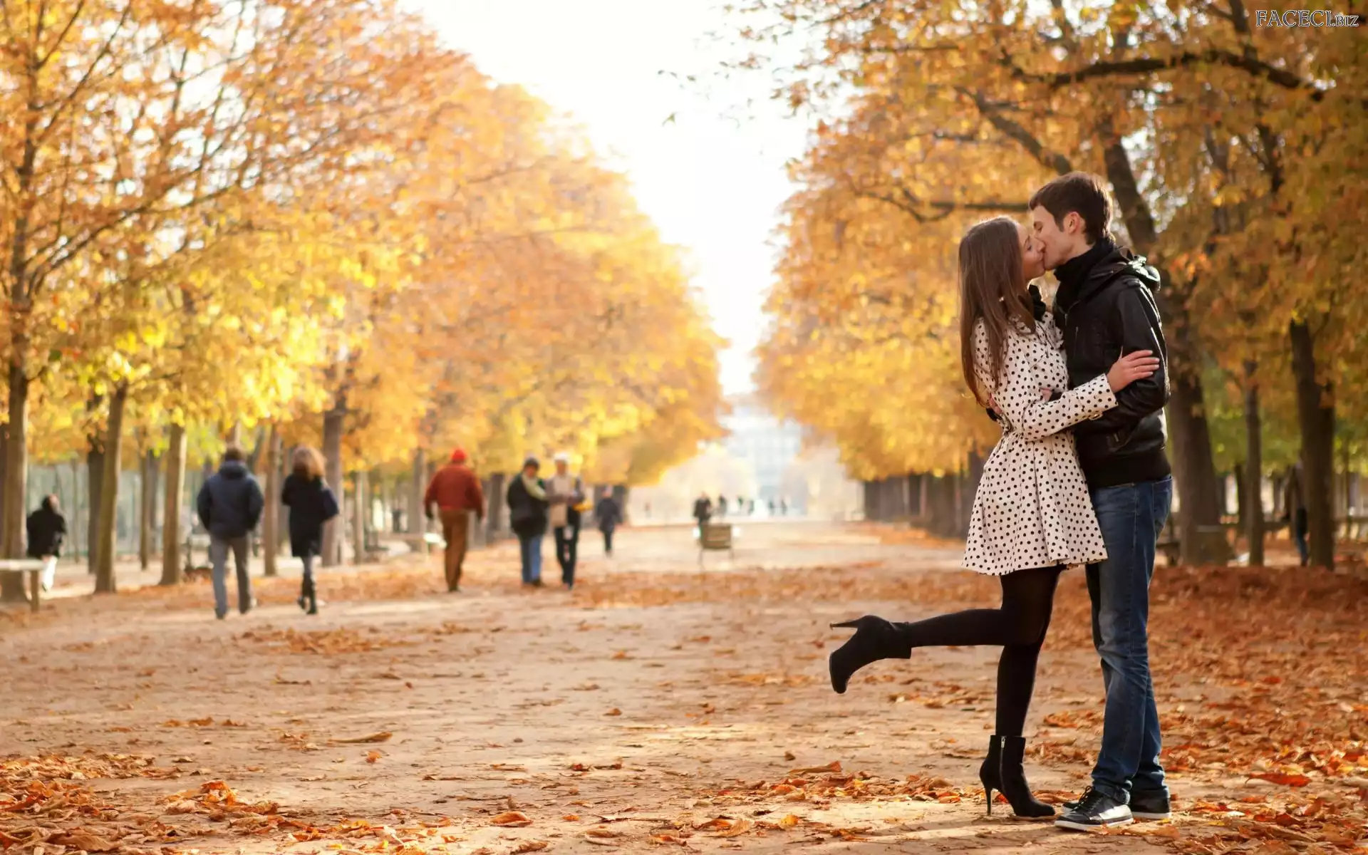 Liście, Park, Pocalunek, Mężczyzna, Alejka, Kobieta - faceci.biz