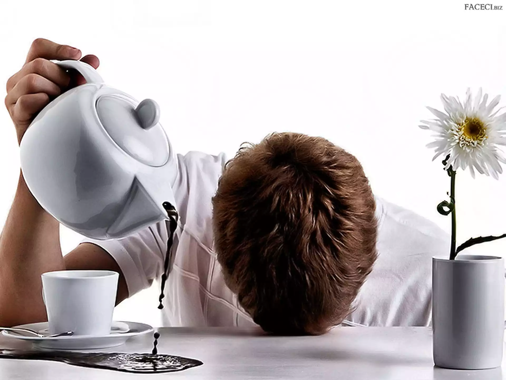 Mężczyzna, Kwiatek, Śpiący, Kawa - faceci.biz